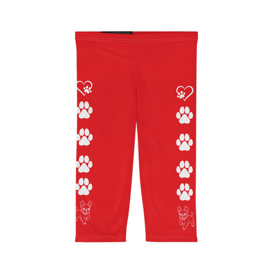 Paws and Hearts French Bulldog Capri Leggings red and white