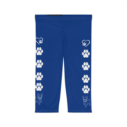 Paws and Hearts French Bulldog Capri Leggings Blue and White