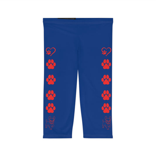 Paws and Hearts French Bulldog Capri Leggings Blue and Red