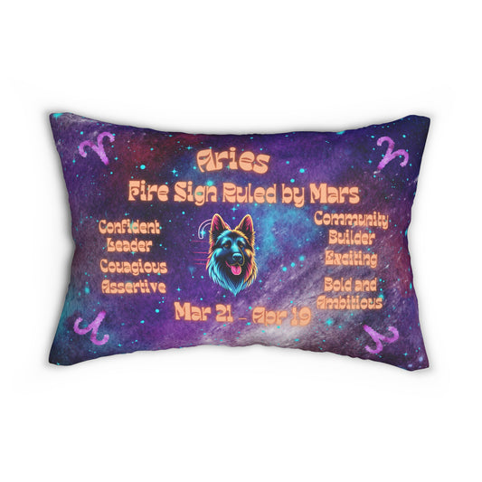 Celestial Zodiac Aries as German Shepherd Spun Polyester Lumbar Pillow - Dog Breed Zodiac